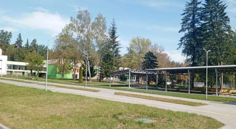 На территории располагается Парковая зона (для ландшафтотерапии). Имеются площадки для тихого отдыха с теневыми навесами, площадка для занятий биологией на воздухе (с навесом от атмосферных осадков) и площадка полевых и овощных культур, игровые и спортивные площадки.